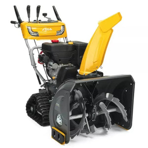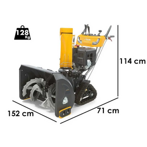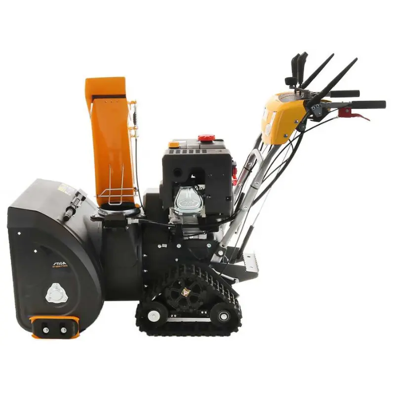 Quitanieves de gasolina ST 5266 P TRAC de STIGA es una quitanieves profesional con transmisión de vía triangular que garantiza un agarre óptimo incluso en superficies inclinadas.