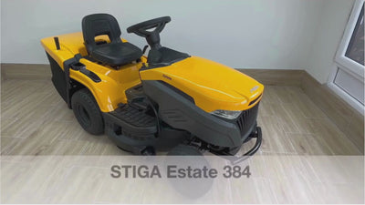 El tractor cortacésped Stiga Estate 384 es un modelo de gasolina con transmisión hidrostática, diseñado para un uso cómodo y eficiente en jardines grandes de hasta 3500 m². Destaca por su potente motor STIGA ST 450 y su plataforma de corte de 84 cm.