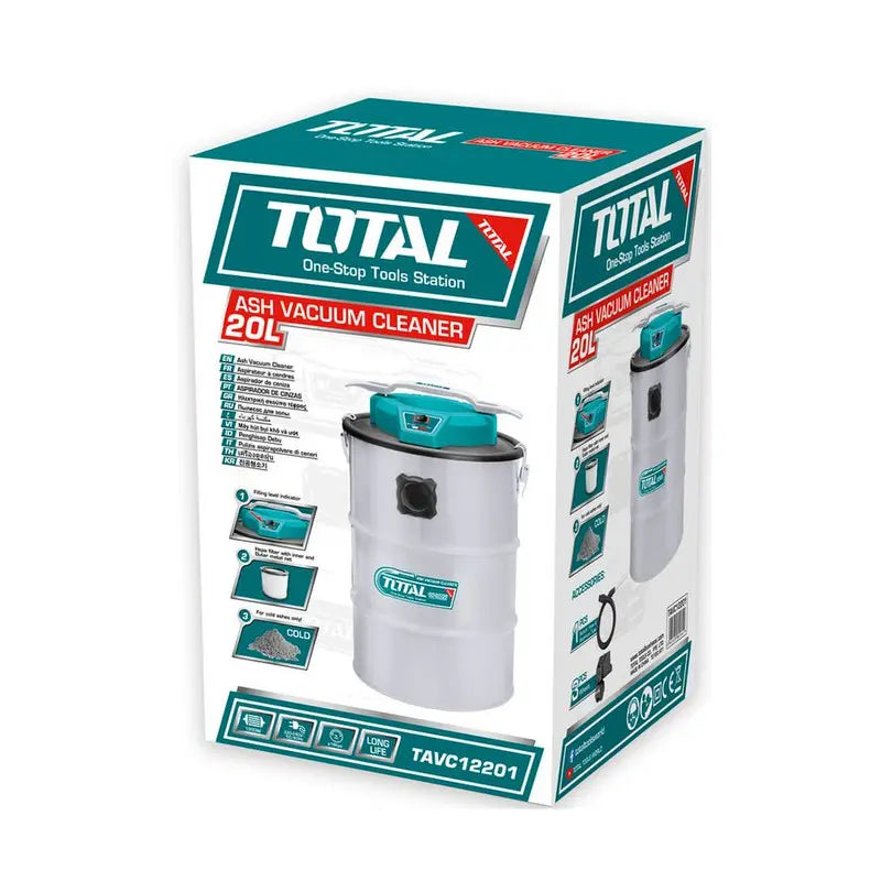 El aspirador de cenizas Total TAVC12202 funciona a 1200 W y cuenta con un depósito que tiene una capacidad de absorción de 20 L. Además, gracias a su filtro hepa con protección metálica y a su diseño, es una máquina resistente a altas temperaturas. Todo ello sumado a su ligero peso, será el aliado perfecto para deshacerte de esas complicadas cenizas.