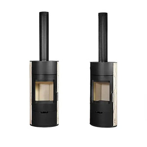 La estufa de leña Elba combina un cuerpo redondo con laterales decorados en piedra. La combinación de piedra y acero aportará textura a cualquier estancia. Con 6kw de potencia, esta estufa es capaz de generar calor y confort para su hogar.